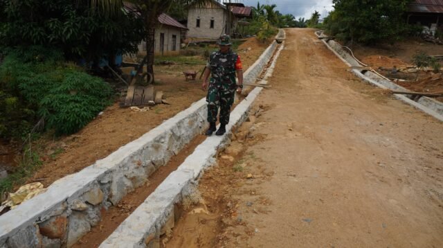 Dansatgas TMMD 127 Kodim 1015/Sampit Tinjau Pengerjaan Siring Jalan di Desa Tri Buana