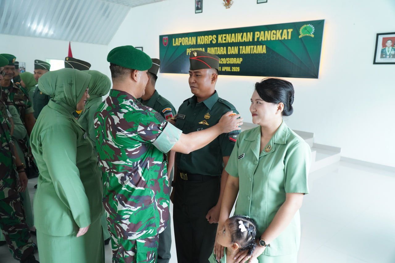 Aula Makodim 1420/Sidrap, Rabu pagi (01/04/2026), dipenuhi rasa bangga dan haru. Sebanyak 11 personel Kodim 1420/Sidrap resmi menerima kenaikan pangkat dalam kegiatan Korps Raport Perwira, Bintara dan Tamtama periode 1 April 2026.