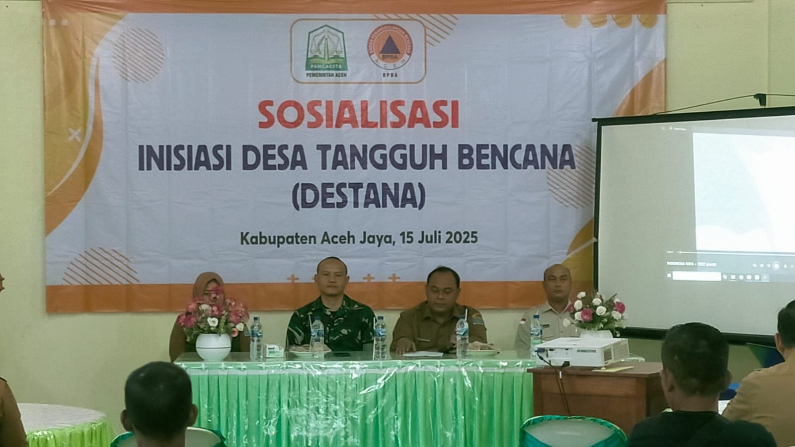 ACEH JAYA – Dalam upaya meningkatkan kesiapsiagaan dan ketahanan masyarakat terhadap bencana, Pemerintah Kabupaten Aceh Jaya bersama Badan Penanggulangan Bencana Aceh (BPBA) Provinsi Aceh, serta instansi terkait, sukses menggelar Sosialisasi Inisiasi Desa Tangguh Bencana (DESTANA) di Desa Keutapang, Kecamatan Krueng Sabee, pada Selasa (15/7/2025). Kegiatan ini dihadiri oleh jajaran pejabat penting daerah, menunjukkan sinergi kuat dalam membangun ketangguhan bencana di wilayah tersebut.