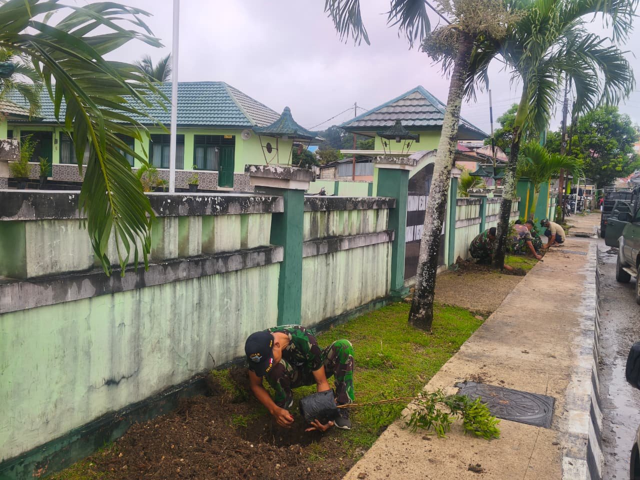 Dengan semangat kebersamaan, seluruh anggota yang terlibat tampak antusias dalam menanam berbagai jenis pohon di area Makodim.