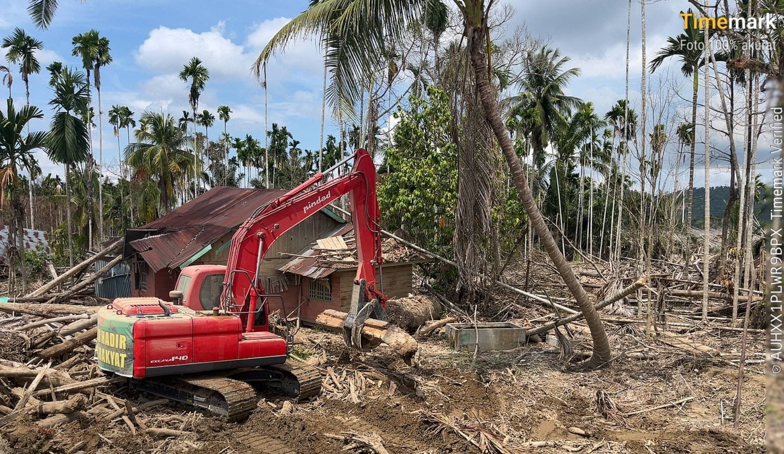 “Di sela kesibukannya, salah satu anggota Yonzipur 5/ABW menyampaikan bahwa pengerahan alat berat ini difokuskan untuk mempercepat pembersihan sisa kayu dan lumpur agar lahan perkebunan serta akses warga dapat segera pulih.”