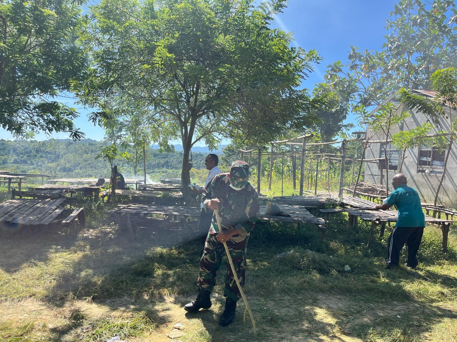 Anggota Kodim 1621 TTS Gotong Royong Di Pasar Tetaf, Dalam Rangka Hari Rabu Abu