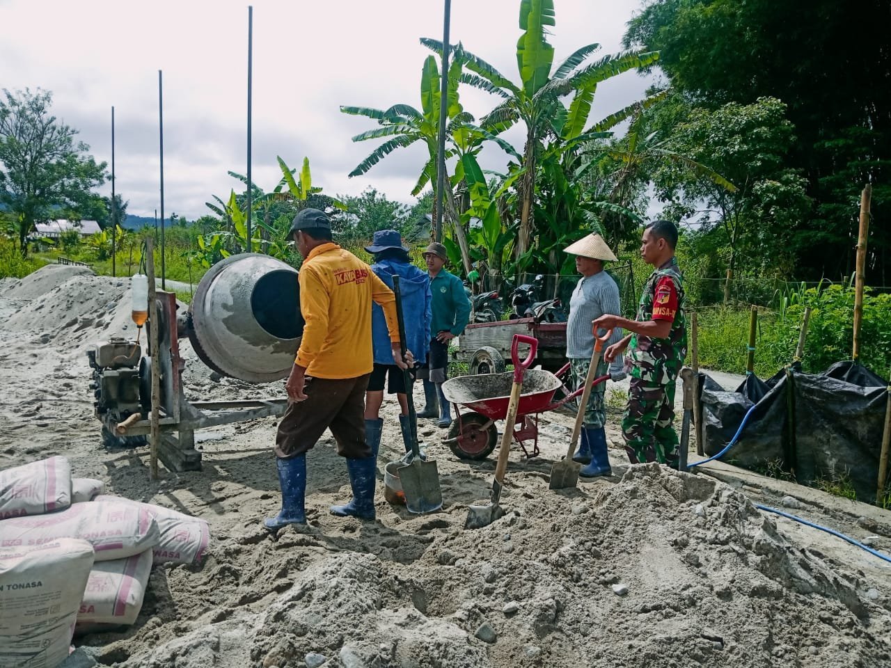 Dalam kegiatan ini, Kopda Jusriadi tidak hanya menjalin hubungan yang lebih erat dengan warga, tetapi juga turut berpartisipasi langsung dalam kegiatan pembangunan rumah salah satu warga setempat. Kegiatan pengecoran pondasi rumah tersebut merupakan bentuk kepedulian Babinsa terhadap kebutuhan masyarakat di wilayah binaannya.