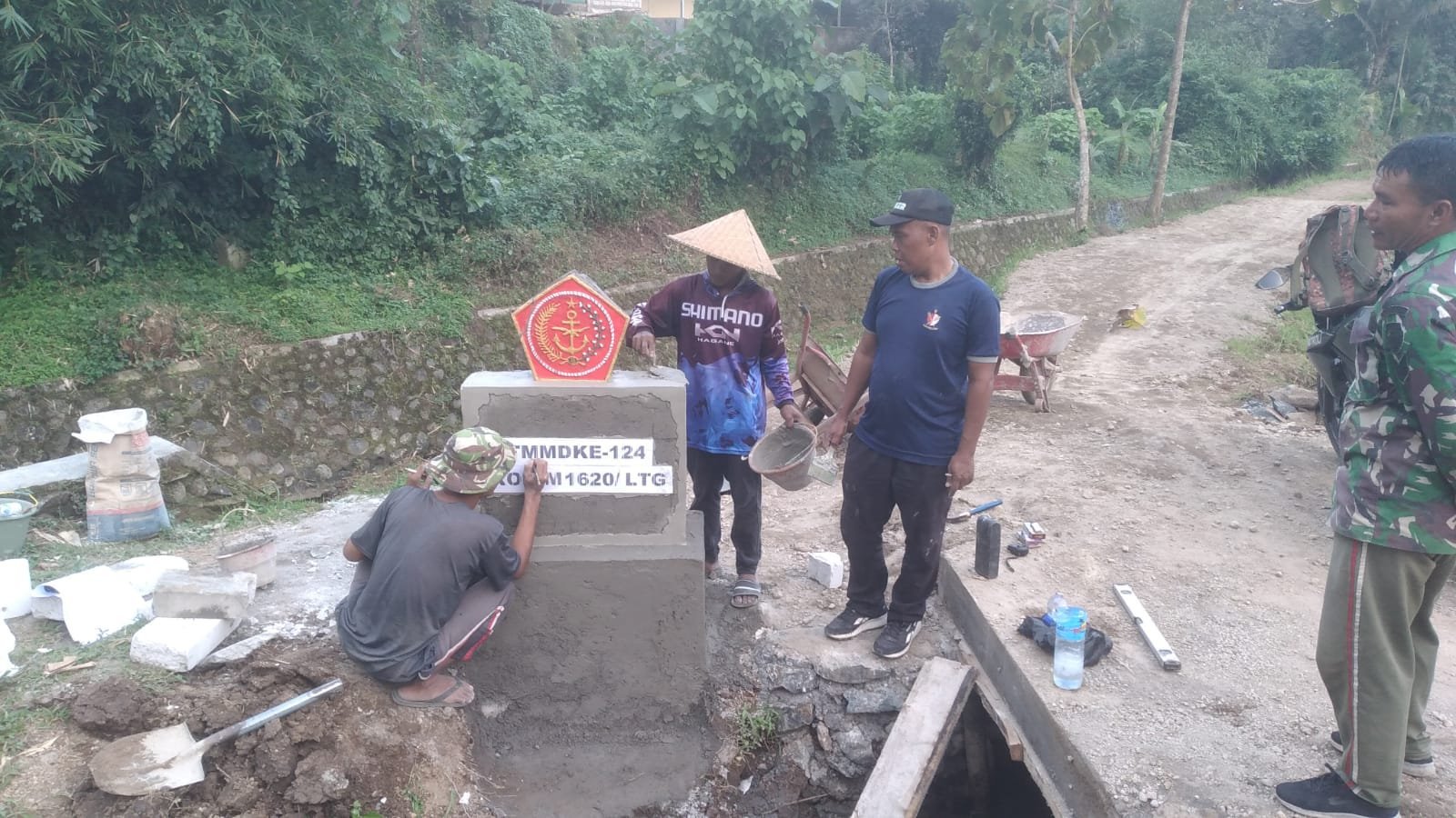 Anggota Satgas Bangun Tugu TMMD Ke-124 di Desa Selebung