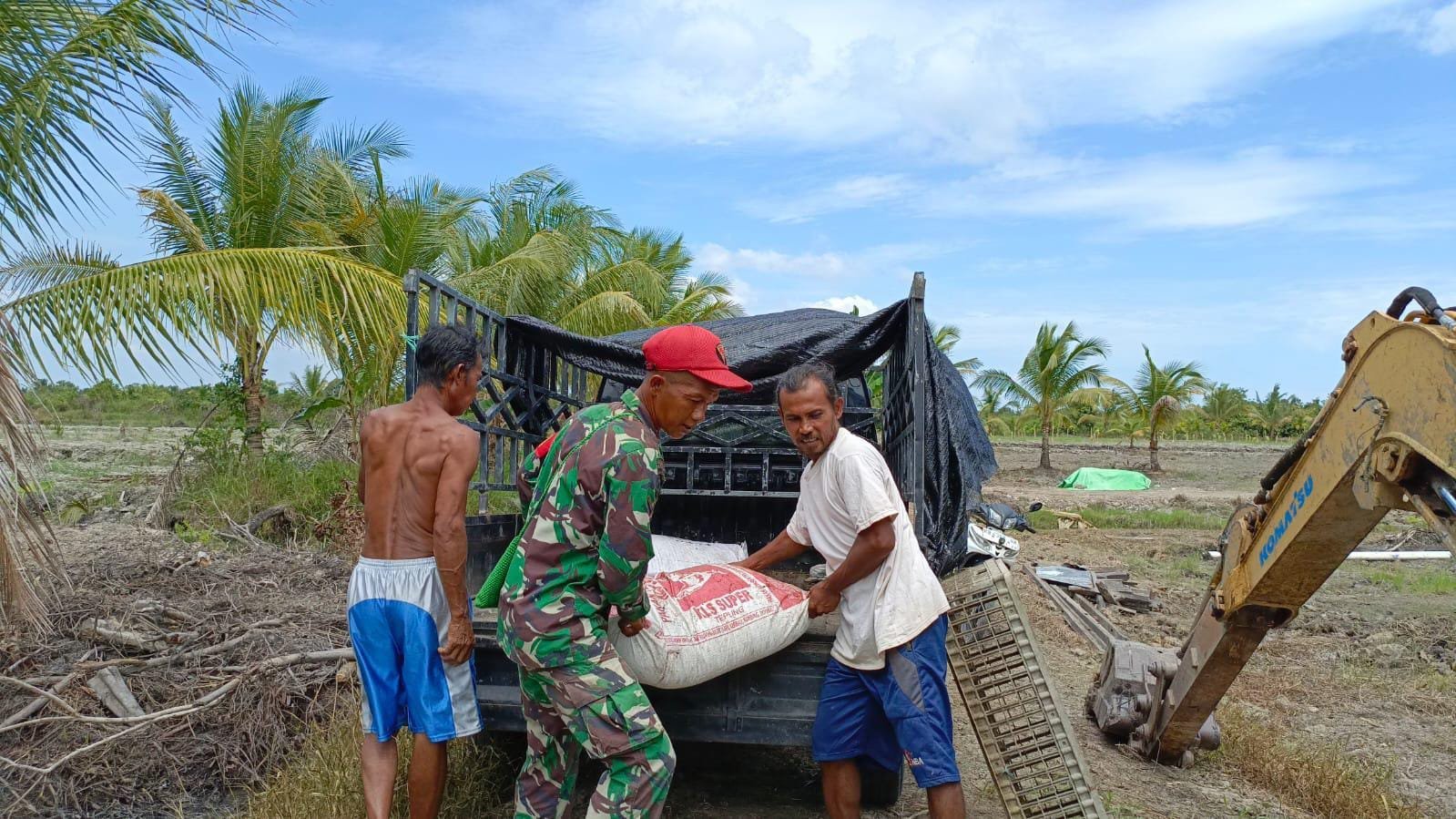 Mempawah – Pak Agua, warga Dusun Nikmat, Desa Sungai Purun Kecil, tampak berkeringat saat mengangkat karung pakan bebek bersama Babinsa. Meski usianya tak muda lagi, semangatnya untuk ikut terlibat dalam program TMMD Ke-124 tetap menyala. “Biar tua, kalau kerja bareng TNI semangatnya beda,” katanya sambil tersenyum.