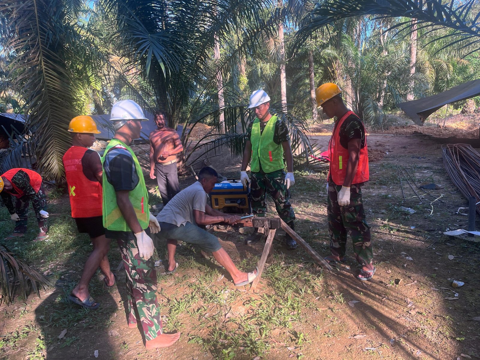 Danpos Ramil Telaga Antang Kodim 1015/Sampit, Serma Ahmad Zairosi terus hadir dan aktif terlibat di tengah kegiatan pembangunan. Tidak sekadar memberi motivasi dan arahan, ia juga turun langsung membantu pekerjaan di lapangan, mulai dari menyusun pola anyaman hingga memastikan posisi besi sesuai dengan desain. Kehadirannya menjadi penggerak semangat sekaligus mempererat sinergi erat antara TNI dan masyarakat dalam mempercepat pembangunan desa yang berdampak langsung pada kesejahteraan warga.