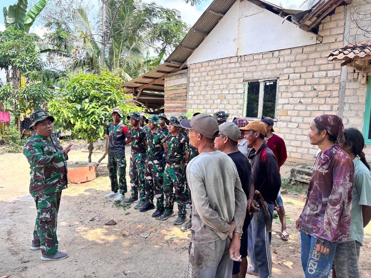 Apel dipimpin oleh personel Satgas TMMD yang memberikan arahan terkait teknis pekerjaan, pembagian tugas, dan penekanan pentingnya sinergi antara TNI dan masyarakat dalam pelaksanaan program TMMD. Seusai apel, personel Satgas dan warga langsung bergerak menuju lokasi Sasaran 2 di RK 4 RT 2 untuk memulai kegiatan pembangunan Rumah Tidak Layak Huni (RTLH).