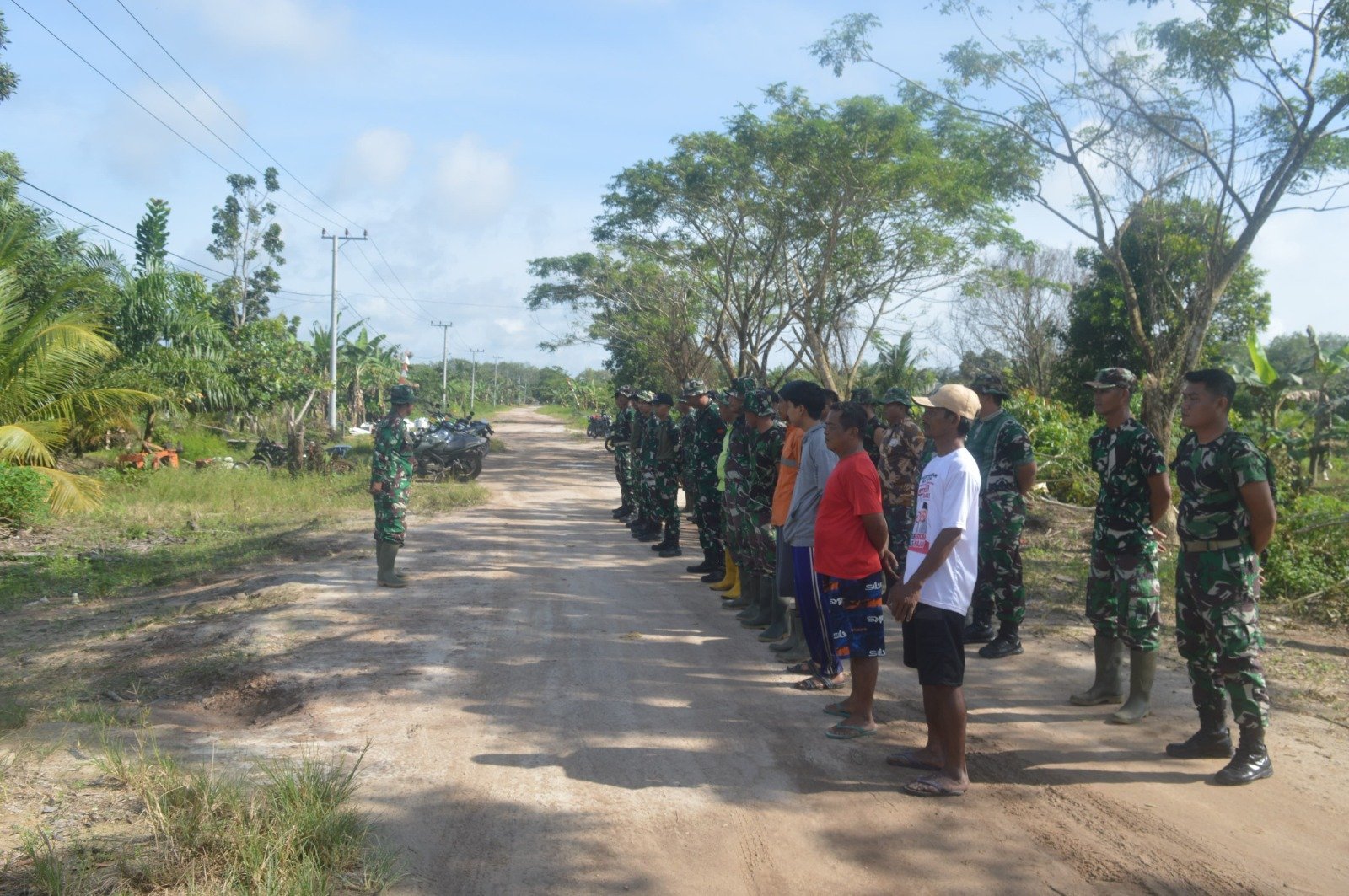 Pangkalan Bun – Seperti halnya dalam setiap tugas dan operasi, apel pagi menjadi rutinitas bagi anggota TNI, termasuk saat melaksanakan kegiatan TNI Manunggal Membangun Desa (TMMD) ke-123. Pada Sabtu (22/02/2025), Satgas TMMD Kodim 1014/Pbn mengawali hari ke-4 pelaksanaan TMMD dengan apel pagi di lokasi kegiatan.