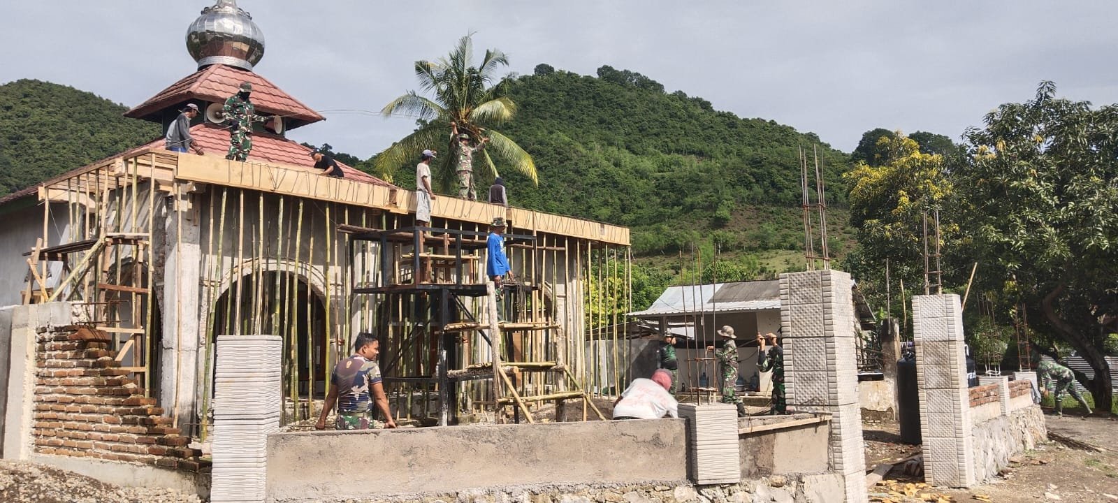 Atap Teras Di Masjid Nurul Iman Sudah 30 Persen Dibangun Satgas TMMD Ke-123.