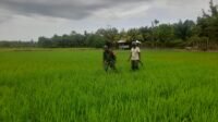 Babinsa Teunom Bantu Petani Bersihkan Gulma Sawah, Perkuat Ketahanan Pangan