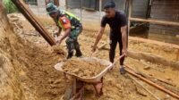 Babinsa Koramil 09/Samatiga Serda Maulizar Bantu Warga Dalam Pengecoran Pondasi Rumah di Desa Pucuk Lueng, Kecamatan Samatiga