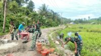 Kebersamaan Satgas TMMD Kodim 1305/BT Bangun Talud 1.030 Meter di Dusun Ogomolobu