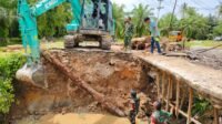 Prajurit Kodim 0428/MukoMuko Gotong Royong Perbaiki Jembatan Rusak Parah di Desa Nenggalo