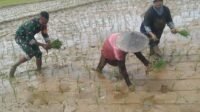Babinsa Koramil 1412-04/Kolaka Dampingi Penanaman Bibit Padi di Wilayah Binaan