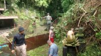 Babinsa Abuan Bersama Pecalang Laksanakan Pembersihan Material Longsor di Areal Pura Penglukatan Taman Pecampuhan