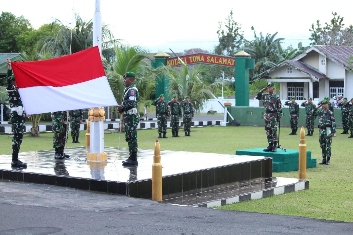Tidore, Senin (6 Januari 2025) – Kodim 1505/Tidore melaksanakan upacara awal bulan pertama di tahun 2025. Kasdim 1505/Tidore, Mayor Inf. Nasarudin Umasugi, bertindak sebagai Inspektur Upacara (Irup) dan membacakan amanat Danrem 152/Baabullah, Brigjen TNI Enoh Solehudin, S.E.