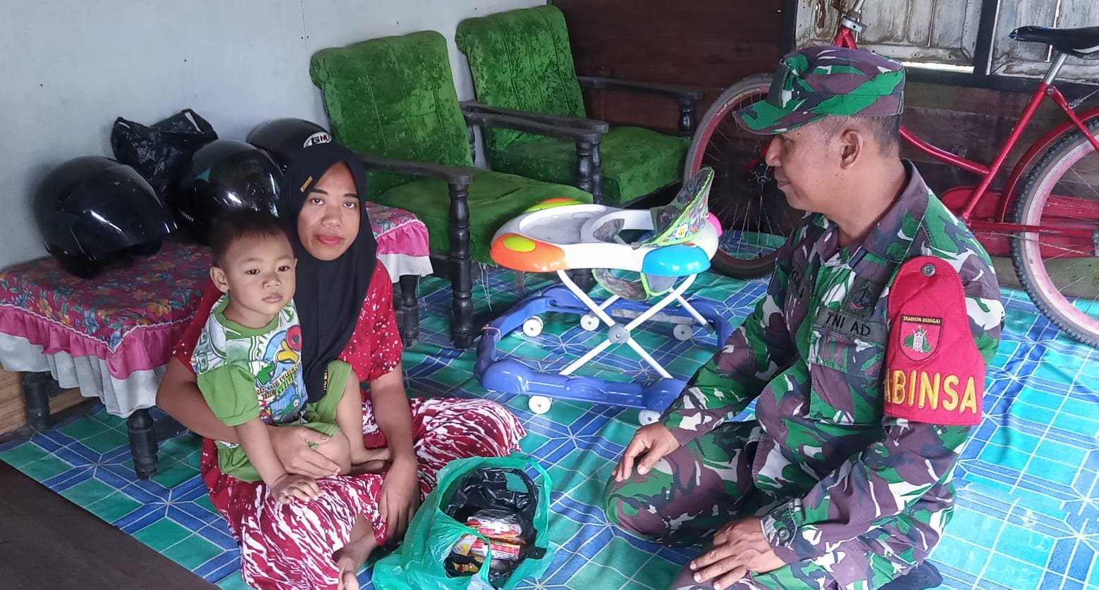Barito Kuala – Dalam rangka mendukung program pemerintah untuk menekan angka stunting dan gizi buruk di wilayah pedesaan, Babinsa Koramil 1005-08/Anjir Muara, Serma Ngali, melaksanakan kegiatan pemberian bantuan telur rebus kepada anak asuh penderita gizi buruk di Desa Marabahan Baru, No.19, RT.03, Kecamatan Anjir Muara, Kabupaten Barito Kuala, pada Jumat (6/2/2026).