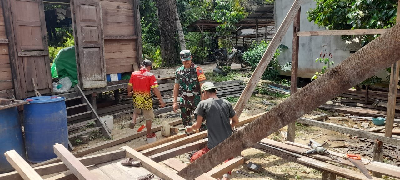 Ketapang – Wujud kepedulian dan kedekatan TNI dengan masyarakat terus ditunjukkan oleh Babinsa di wilayah binaan. Pada hari Jum’at, 16 Januari 2026, Babinsa Koramil 1203-05/Sungai Laur, Sertu Juni, melaksanakan kegiatan komunikasi sosial (Komsos) dengan membantu pendirian tiang rumah milik warga binaan.