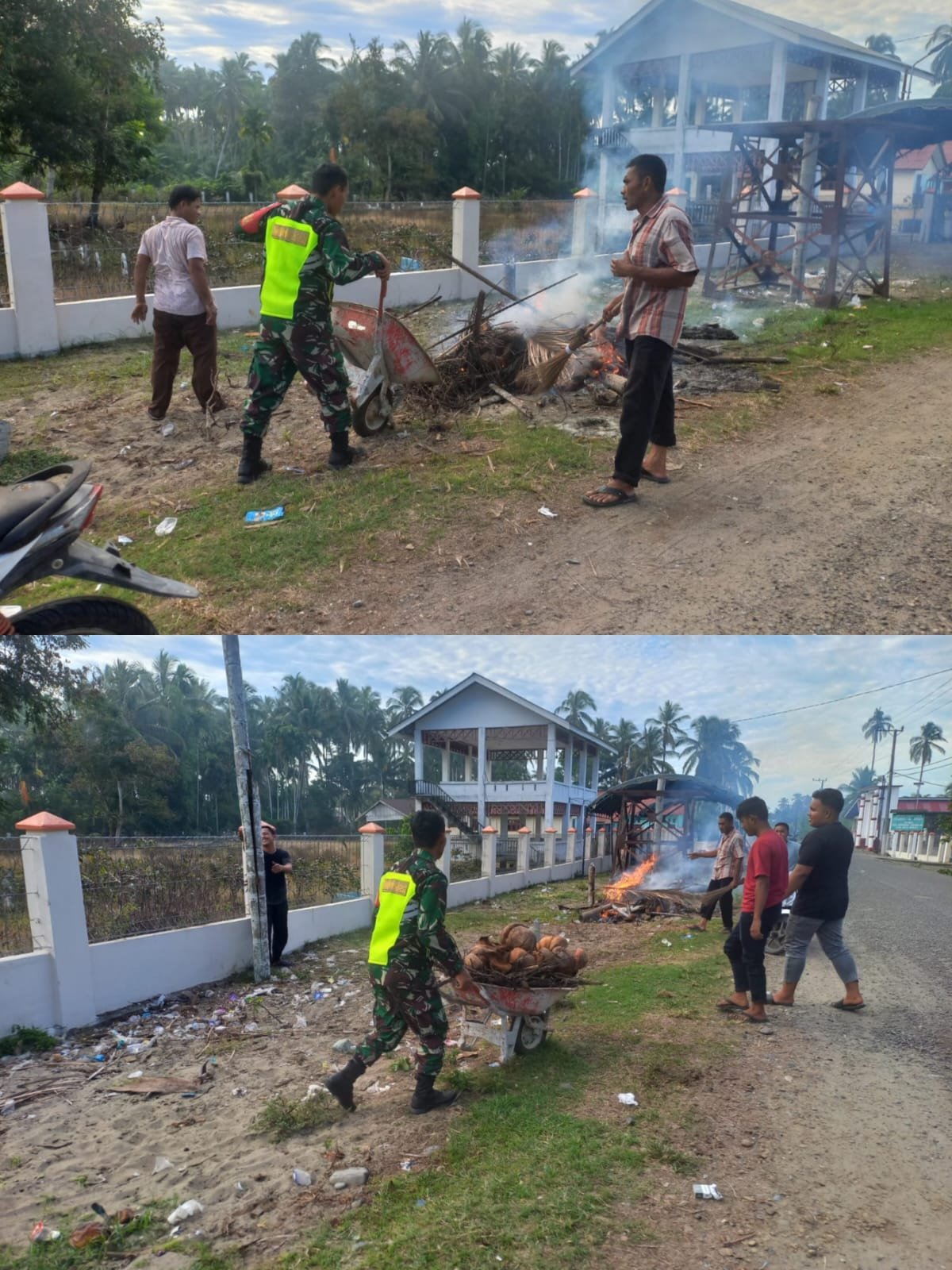 ACEH BARAT – Dalam rangka menjaga kebersihan lingkungan sekaligus mengisi kegiatan positif di bulan suci Ramadhan, Babinsa Koramil 08/Arongan Lambalek Kodim 0105/Abar, Sertu Agus S., bersama masyarakat melaksanakan karya bakti gotong royong membersihkan jalan dari sampah di Desa Kubu, Kecamatan Arongan Lambalek, Kabupaten Aceh Barat, Kamis (12/03/2026).