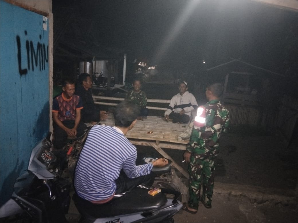 Kegiatan tersebut merupakan bagian dari tugas pembinaan teritorial Babinsa untuk memantau situasi keamanan di wilayah binaan, sekaligus mempererat hubungan silaturahmi dengan masyarakat. Dalam patroli tersebut, Babinsa berinteraksi langsung dengan warga yang sedang berjaga di pos ronda sambil berbincang santai membahas kondisi keamanan lingkungan dan situasi sosial masyarakat setempat.