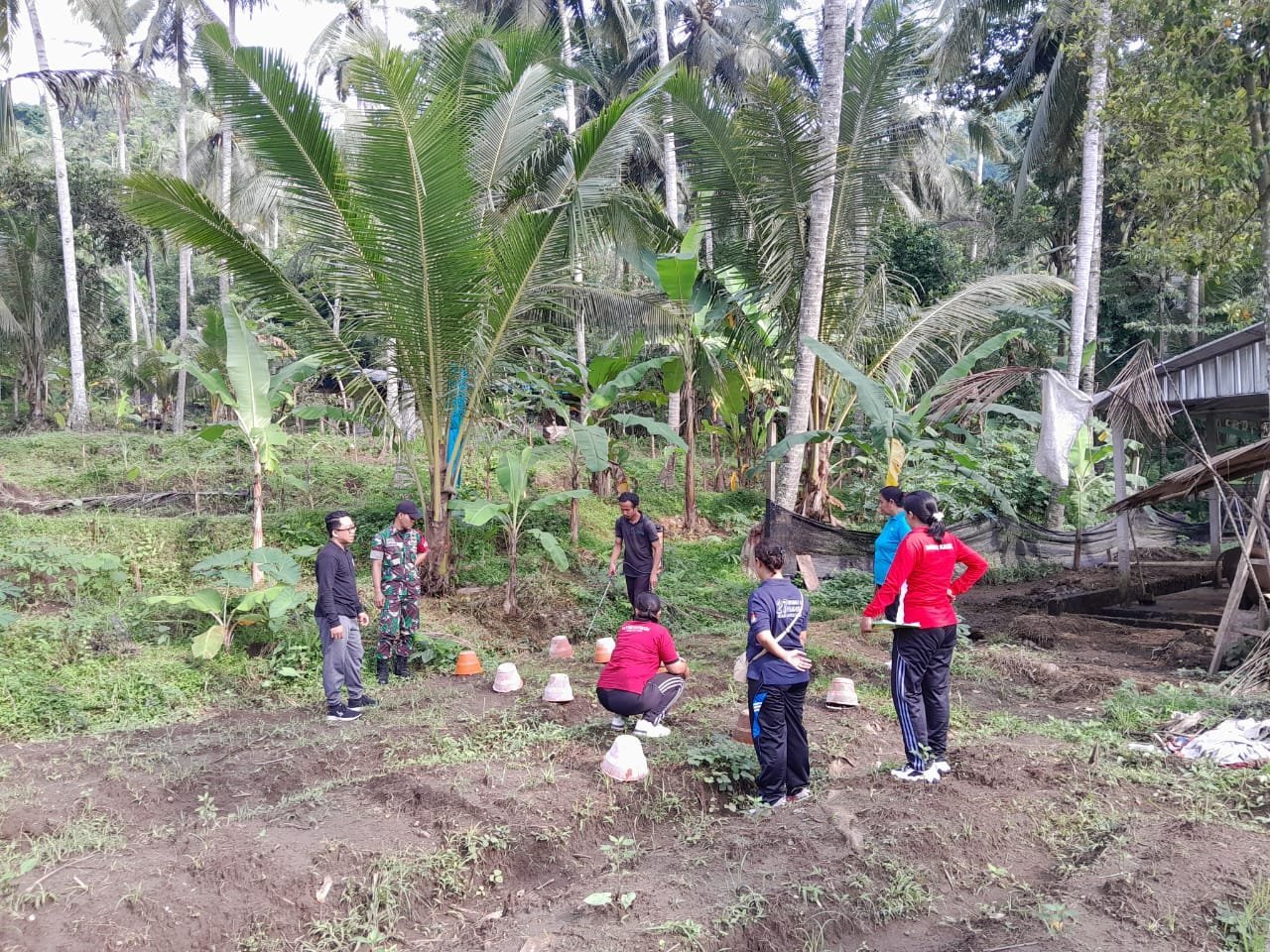 Untuk kegiatan yang dilaksanakan adalah penanaman bibit pisang, cabe hijau dan bibit papaya serta pembersihan dan pemeliharaan di lahan Hanpangan yang telah ditanami beberapa waktu yang lalu,’terangnya.