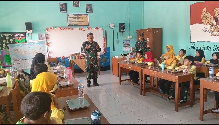 Batang,- Kedatangan Babinsa dari Koramil 10/Batang Peltu Mery Setyawan bersama time dari Program Makan Bergizi Gratis (PMBG) disambut antusias positif siswa/siswi SDN 1 Kauman.