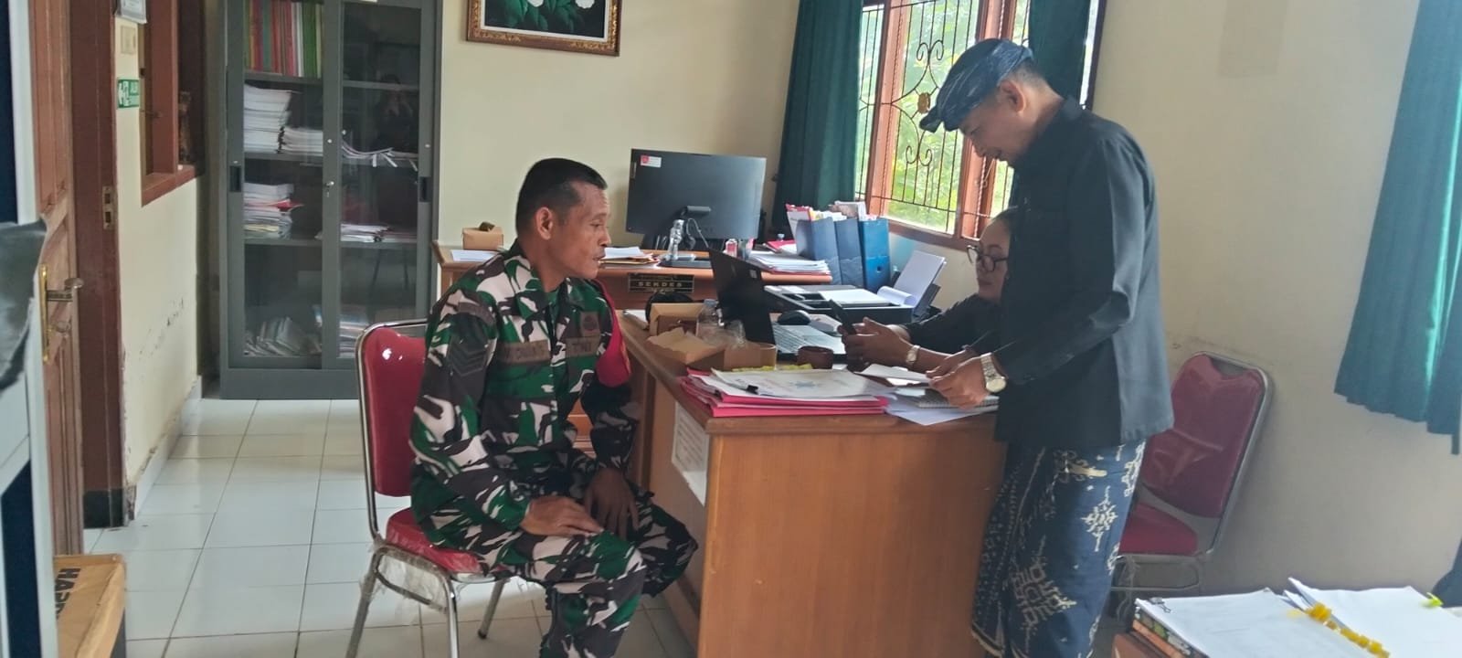 Dalam kesempatan tersebut, Babinsa bersama perangkat desa saling bertukar informasi terkait perkembangan situasi wilayah, pendataan warga, serta langkah-langkah antisipasi terhadap potensi permasalahan yang dapat mengganggu kondusifitas desa.