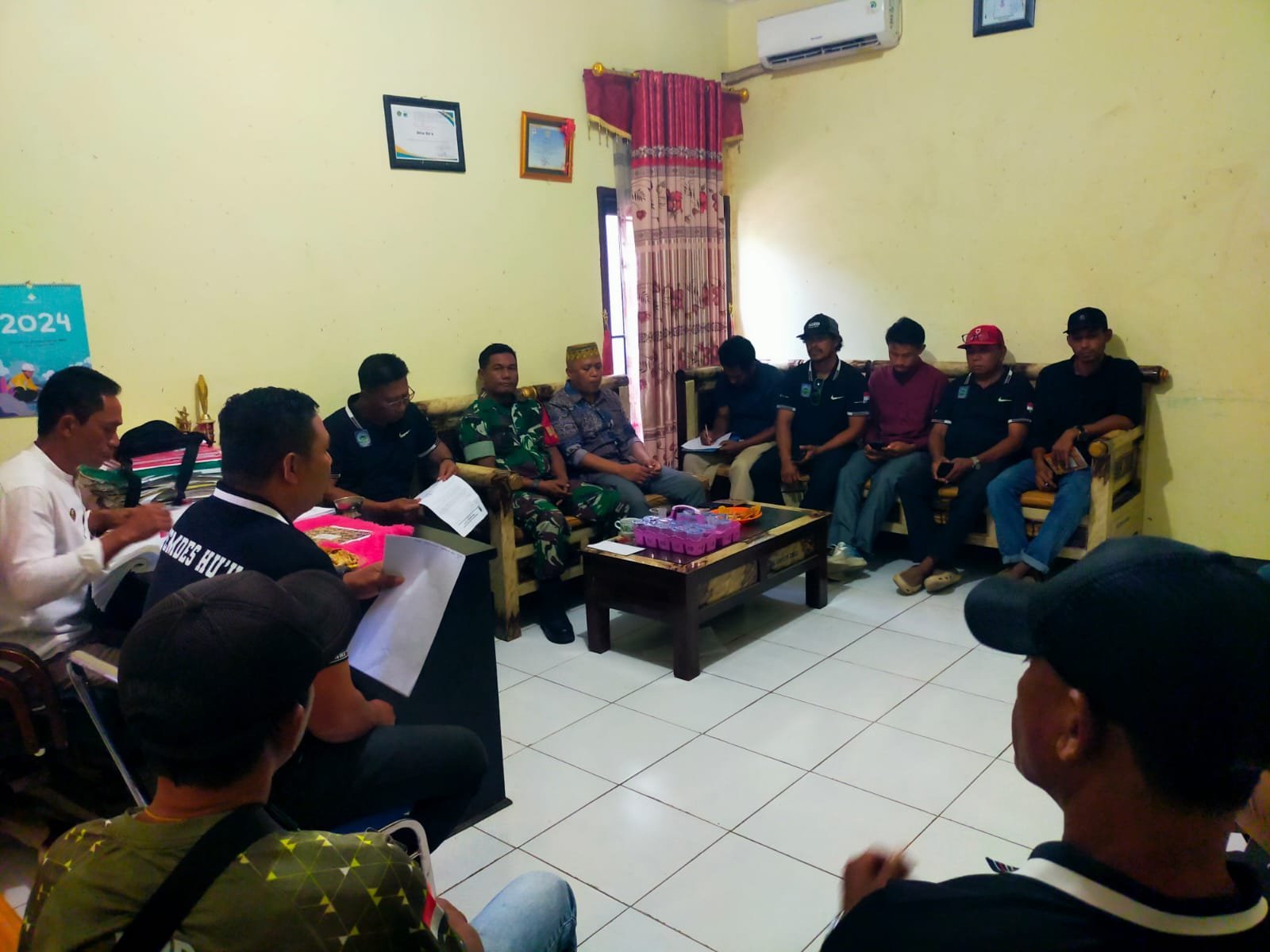 Pertemuan yang berlangsung di ruang kerja Kepala Desa Hu’u ini membahas rencana pengaktifan kembali Pos Keamanan Lingkungan (Poskamling). Langkah ini diambil menyusul perlunya sistem keamanan swakarsa yang melibatkan seluruh elemen masyarakat agar tercipta lingkungan yang aman, tertib, dan kondusif.