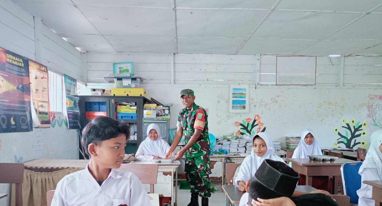 ACEH JAYA – Dalam rangka memastikan program pemberian makanan bergizi berjalan lancar dan tepat sasaran, Babinsa Koramil 01/Jaya Kodim 0114/Aceh Jaya, Koptu Dedi, pada hari ini Jumat (29/08/25), melaksanakan pemantauan langsung terhadap distribusi makanan bergizi bagi siswa-siswi Sekolah Dasar Negeri (SD) 2 Jaya di Desa Meunasah Weh, Kecamatan Jaya, Kabupaten Aceh Jaya.