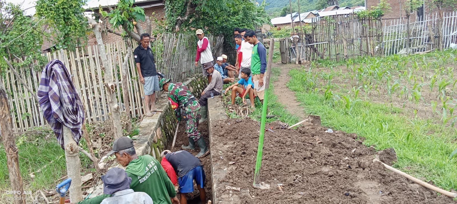 Bima, 11 Januari 2025 – Babinsa Desa Keli, Sertu Ruslan, dari Koramil 1608-04/Woha, memimpin kegiatan gotong royong bersama Babinkamtibmas, warga Dusun Sigi, RT 5 RW 2, Desa Keli, Kecamatan Woha, Kabupaten Bima. Kegiatan yang berlangsung pada Sabtu pagi, pukul 08.00 hingga 11.00 WITA, difokuskan pada pembersihan saluran irigasi tersier untuk mendukung pertanian dan mencegah potensi banjir akibat saluran air yang tersumbat.
