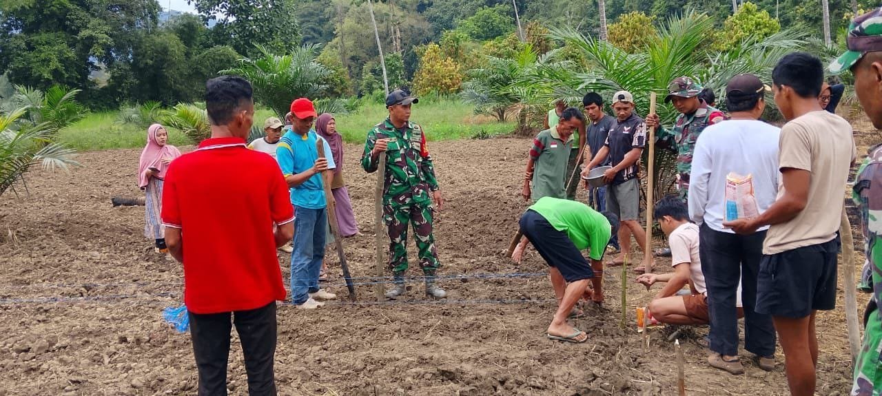 Babinsa Kodim 1412/Kolaka Dampingi Petani dalam Penanaman Jagung di Kelurahan Sanggona Kecamatan Uluiwoi