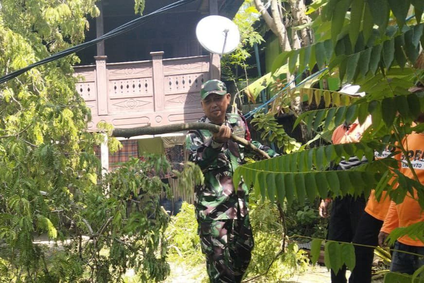“Iya, satu pohon Asam tumbang dengan tiba-tiba, sehingga menimpa separuh rumah dan kios warga. Dari kejadian ini memang tidak ada korban jiwa, namun kerugian korban diperkirakan puluhan juta rupiah.” terang Serka Sahabuddin dalam keterangan tertulisnya.