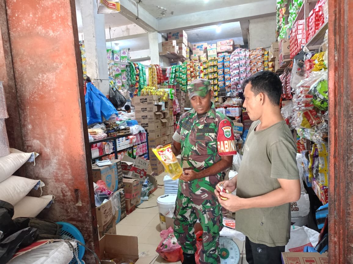 ACEH JAYA – Babinsa Koramil 01/Jaya Kodim 0114/Aceh Jaya melaksanakan kegiatan pengecekan harga bahan pokok di pasar tradisional wilayah Kecamatan Jaya, Kabupaten Aceh Jaya, Kamis (9/10/2025).