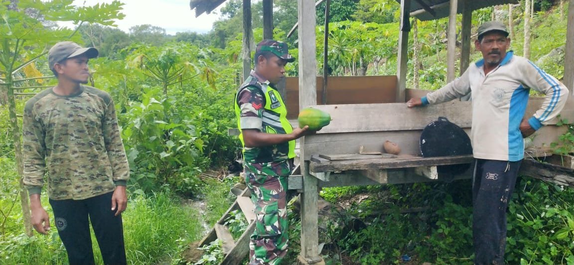 Babinsa Koramil 01/Jaya Jalin Komsos dengan Petani Pepaya di Desa Lamtui