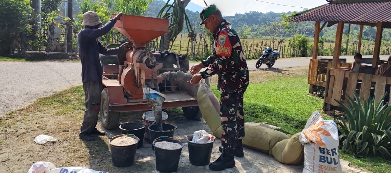 Di sela kegiatan, Praka Muh Arsyad menyampaikan bahwa kehadiran Babinsa di tengah aktivitas masyarakat merupakan bagian dari tugas pembinaan wilayah sekaligus untuk mengetahui kondisi para petani di desa binaan. “Kami ingin memastikan proses penggilingan berjalan lancar dan hasil panen dapat dimanfaatkan dengan baik oleh warga,” ujarnya.