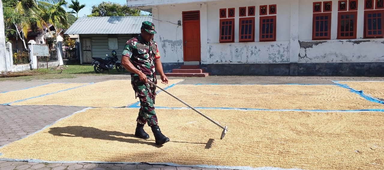 ACEH JAYA – Kehadiran TNI di tengah masyarakat bukan hanya sebatas menjaga keamanan wilayah, tetapi juga menjadi bagian dari denyut kehidupan warga. Seperti yang dilakukan Babinsa Koramil 01/Jaya Kodim 0114/Aceh Jaya, Parak Muh Arsyad, yang turut membantu warga binaannya menjemur padi di Desa Gampong Baro, Kecamatan Jaya, Kabupaten Aceh Jaya.