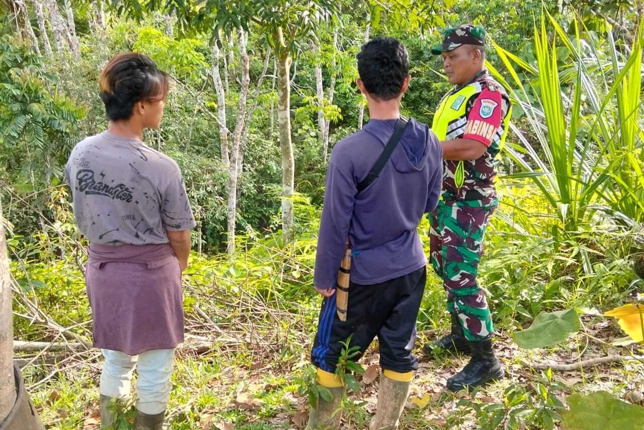 ACEH BARAT – Kegiatan patroli cegah Karhutla, Babinsa Koramil 01/Sungaimas Kodim 0105/Abar Koptu Andri melaksanakan patroli rutin dan sosialisasi dengan masyarakat di Desa Sakuy, Kecamatan Sungaimas, Kabupaten Aceh Barat, Selasa (26/08/2025).