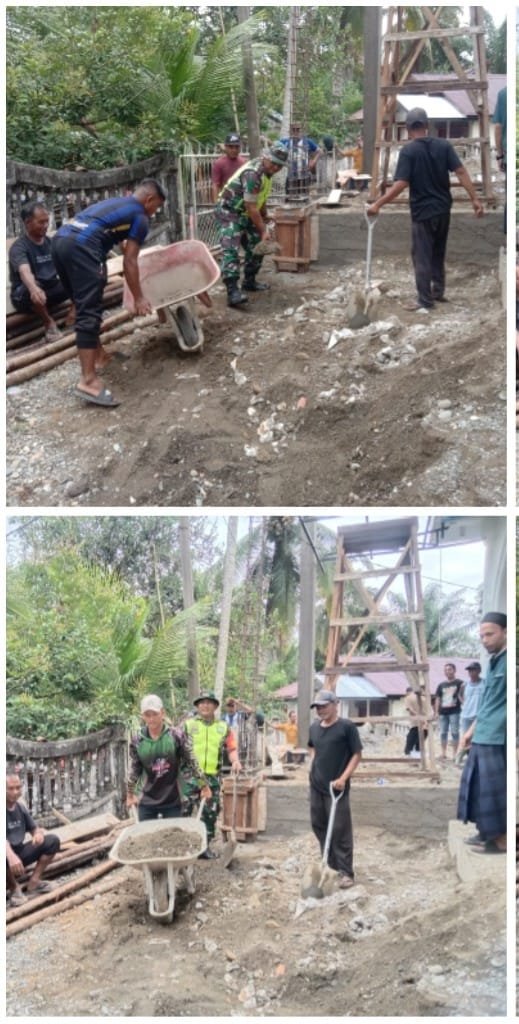 ACEH BARAT – Babinsa Koramil 01/Sungaimas Kodim 0105/Aceh Barat, Kopka Edi Purwoto, melaksanakan kegiatan karya bakti membantu masyarakat binaannya membuat rumah di Desa Geudong, Kecamatan Sungaimas, Kabupaten Aceh Barat, Selasa (13/01/2025).