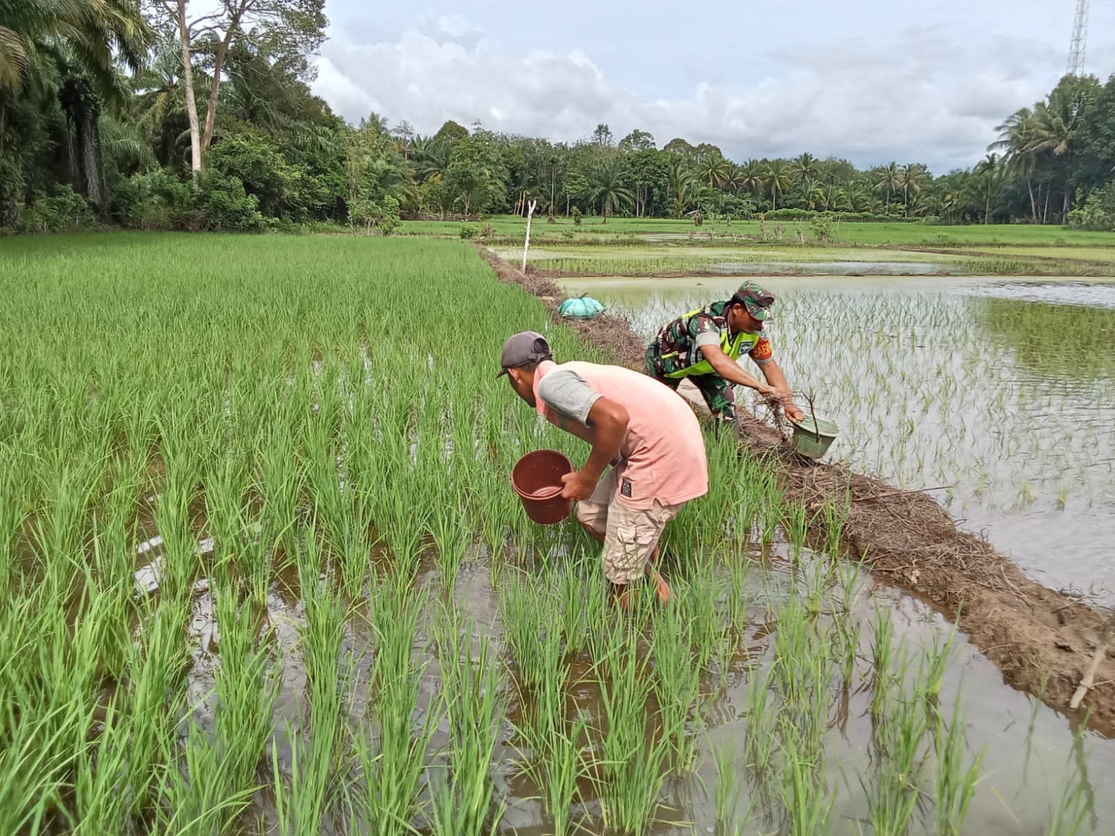 Dalam kegiatan tersebut, Serda Hendri Saputra mendampingi salah satu warga binaannya, Bapak Mahdani, yang sedang melakukan pengendalian hama keong mas di sawahnya. Keong mas merupakan salah satu hama yang cukup merugikan bagi petani padi karena menyerang tanaman muda dan dapat menyebabkan gagal panen bila tidak segera ditanggulangi.
