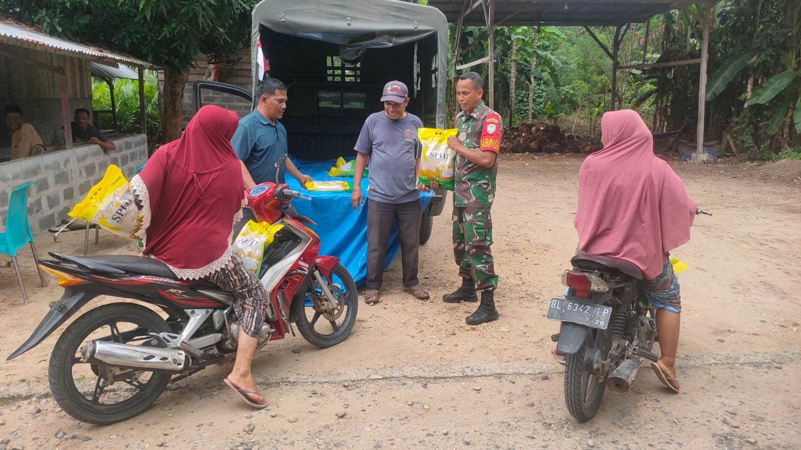 Babinsa Koramil 02/Sampoiniet Fasilitasi Gerakan Pangan Murah Bulog SPHP di Desa Jeumpheuk, Aceh Jaya