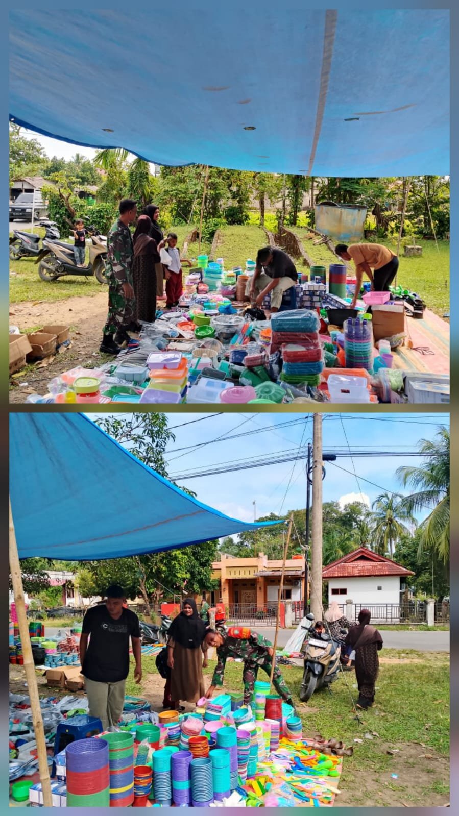 ACEH BARAT – Babinsa Koramil 02/Woyla Kodim 0105/Abar, Serda Didi Suhairi, melaksanakan Komsos dengan penjual barang pecah belah di Desa Kuala Bhee, Kecamatan Woyla, Kabupaten Aceh Barat, Rabu (07/01/2026).