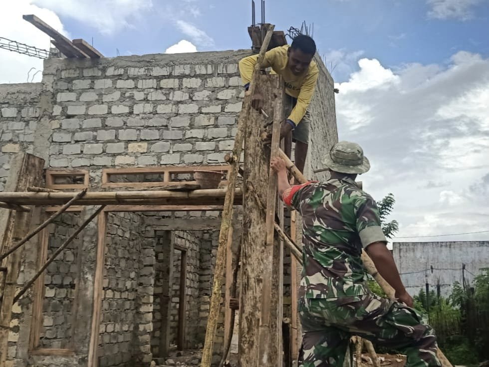 Sertu Sunardin terlihat turut serta membantu warga dalam proses pembangunan rumah, mulai dari pengangkutan material hingga pekerjaan konstruksi ringan. Hal ini mencerminkan kepedulian TNI AD terhadap kesulitan dan kebutuhan masyarakat di wilayah pedesaan.