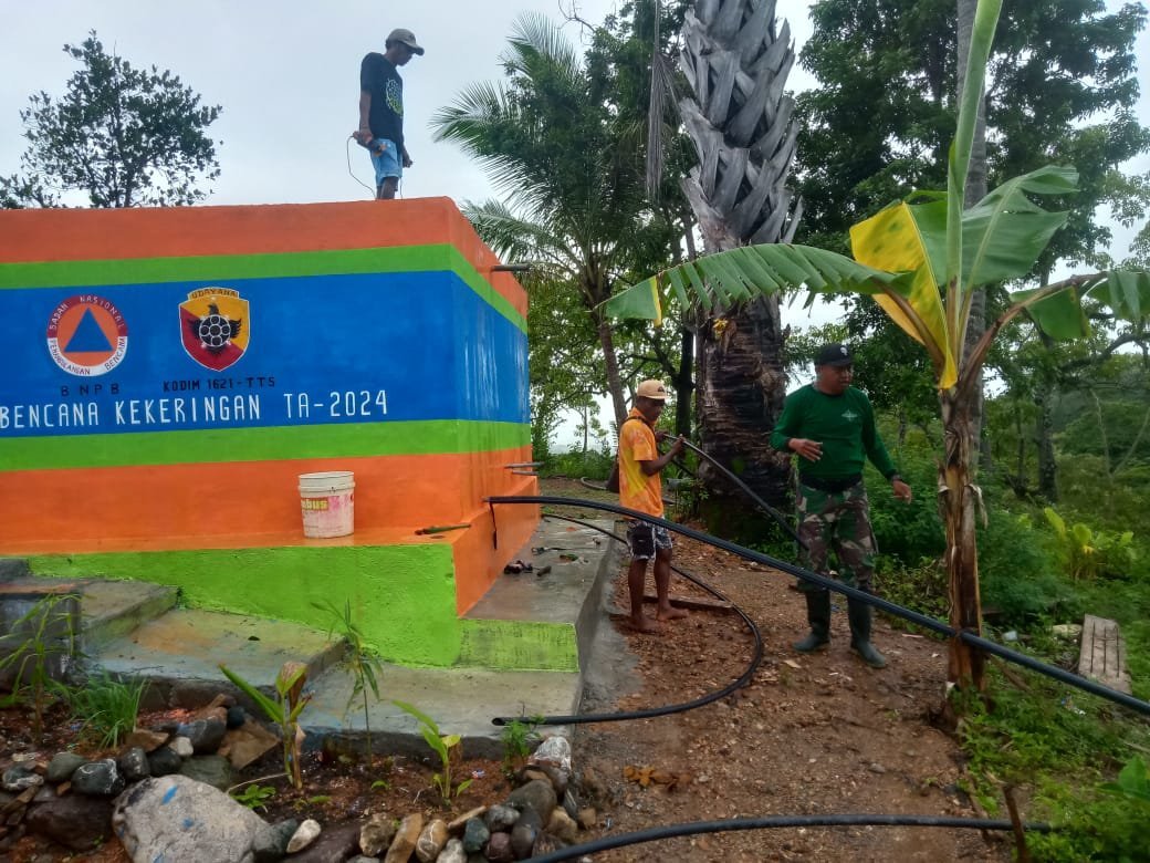 Babinsa Koramil 03 Mollo Utara Laksanakan Instalasi Pipa Air Bersih Pompa Hidram Di Desa Huatalan
