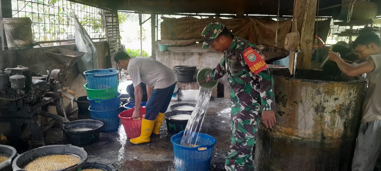 Dalam kegiatan tersebut, Babinsa mengunjungi langsung tempat produksi tempe dan tahu milik warga di wilayah binaannya. Kunjungan tersebut dimanfaatkan untuk berdialog dengan para pelaku usaha sekaligus memantau kondisi proses pengolahan makanan yang menjadi salah satu sumber penghasilan masyarakat setempat.