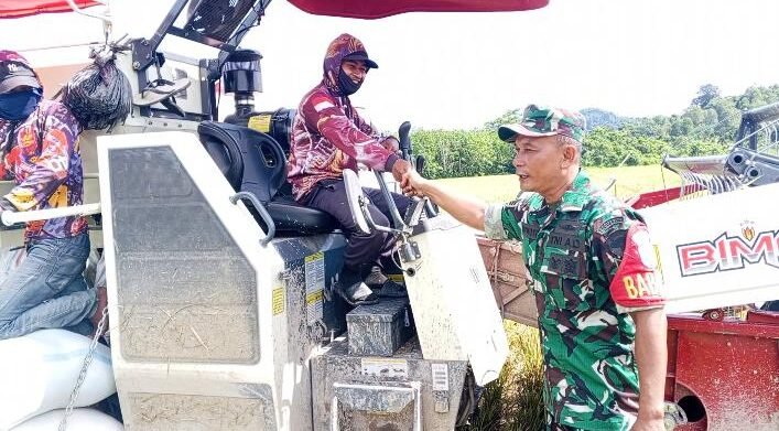 Pendampingan tersebut dilakukan dengan turut membantu proses panen menggunakan alat pemotong padi jenis combine harvester di lahan milik Maryulis, salah satu petani setempat. Kegiatan ini merupakan bagian dari upaya Babinsa dalam mendukung program ketahanan pangan serta memberikan motivasi kepada petani agar terus meningkatkan produktivitas pertanian.