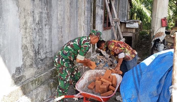 Babinsa Koramil 03/Setia Bakti Gotong Royong Bantu Warga Bangun Rumah