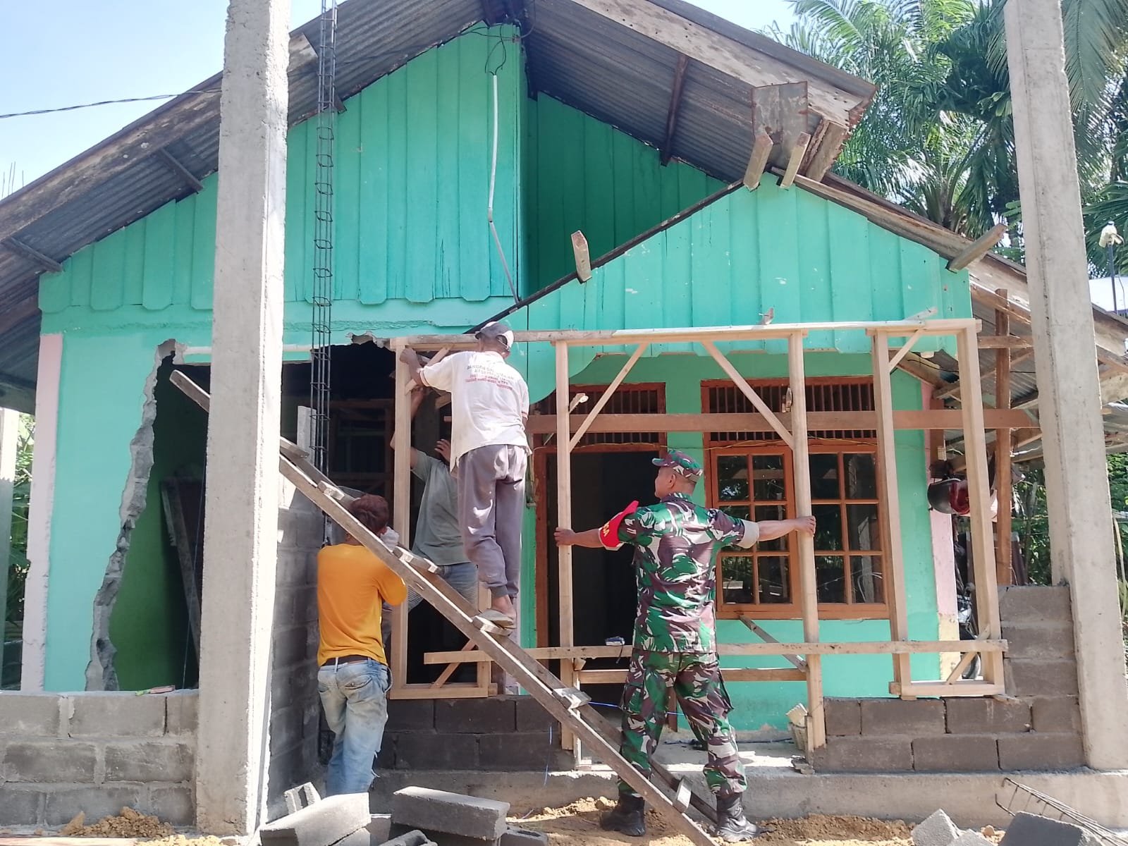 Kegiatan tersebut merupakan bentuk kepedulian Babinsa terhadap kondisi sosial masyarakat di wilayah binaan. Dengan turun langsung membantu proses perbaikan rumah, Babinsa berupaya meringankan beban warga sekaligus memberikan dukungan moral agar pekerjaan dapat berjalan dengan lancar.