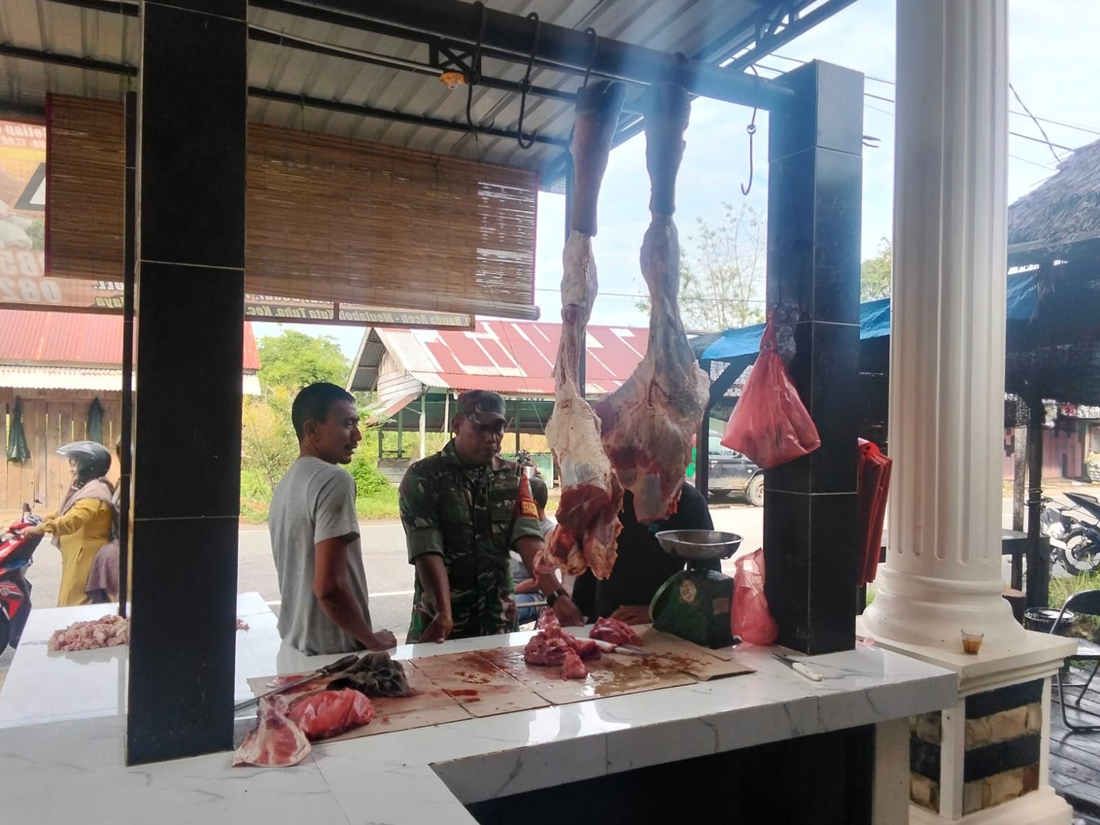Babinsa Koramil 05/Panga Pantau Ketersediaan dan Harga Daging di Pasar Kuta Tuha