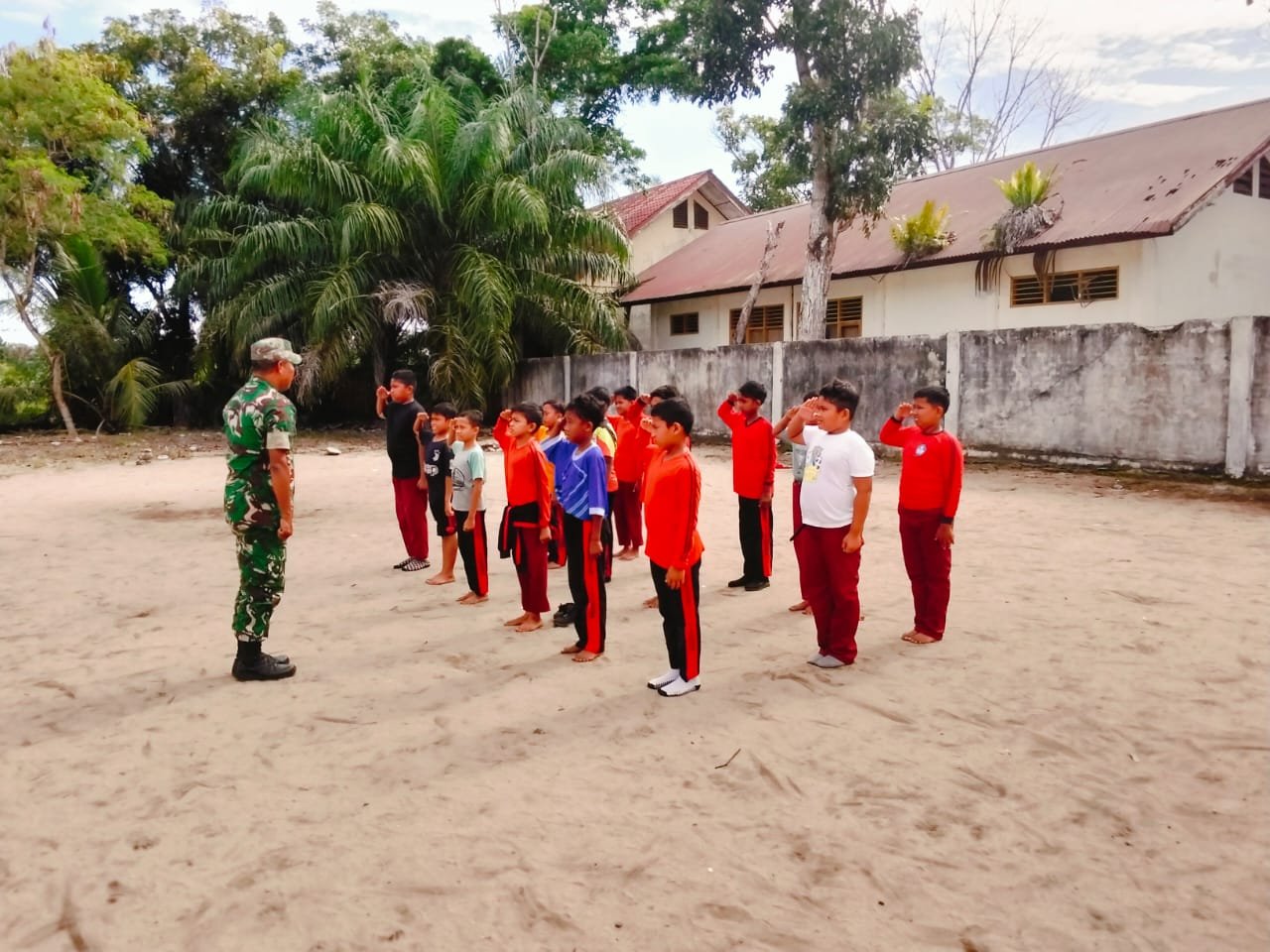 Babinsa Koramil 05/Panga Serda Astrada Beruh Ajarkan Disiplin Dasar Melalui Materi Baris-Berbaris di SDN 1 Panga