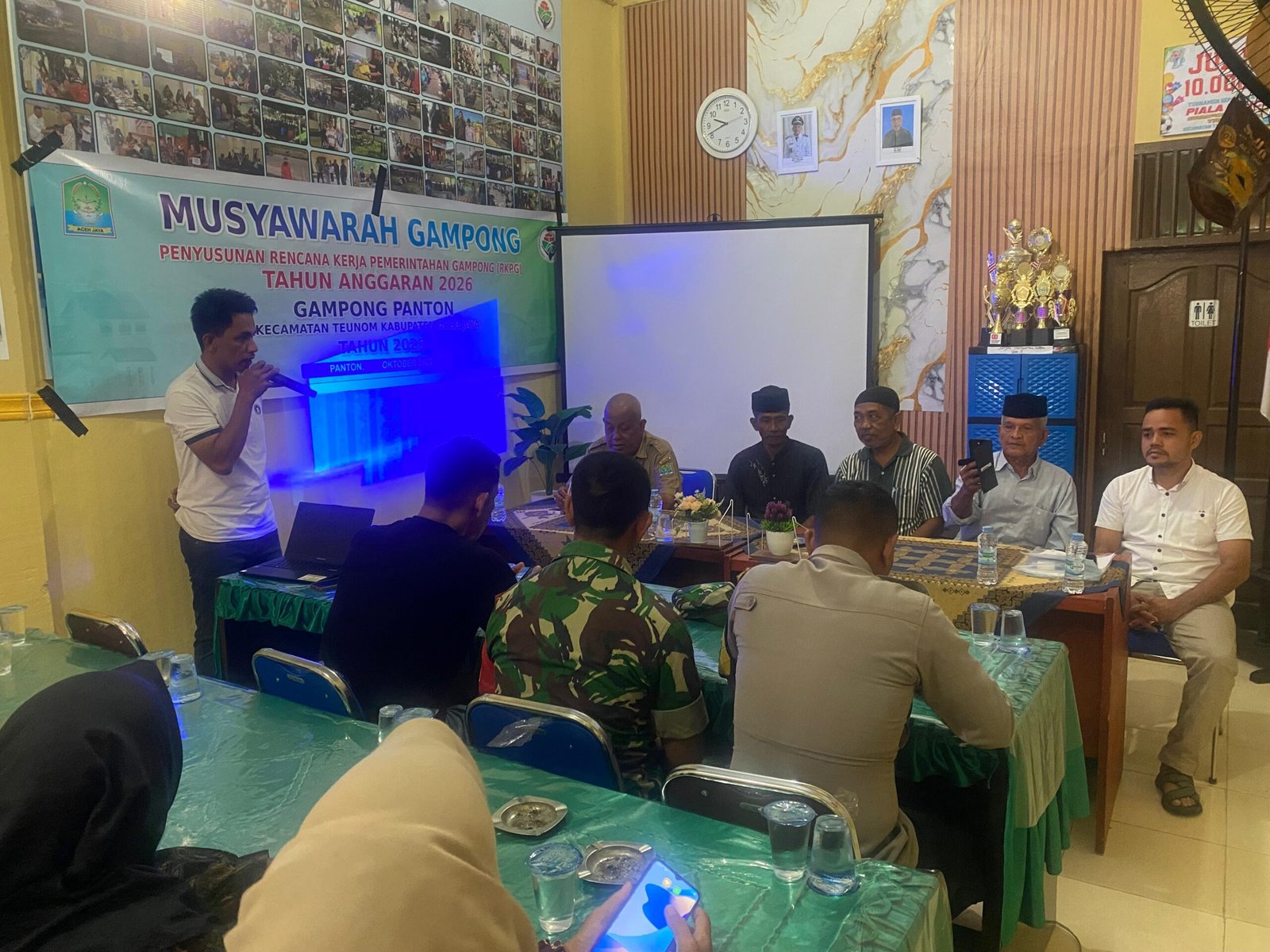 Musrenbang Desa Panton berjalan dengan aman, tertib, dan lancar hingga selesai pada pukul 11.50 WIB. Kegiatan ini menjadi wadah penting dalam menyusun perencanaan pembangunan desa secara partisipatif demi terwujudnya kesejahteraan masyarakat.(0114).